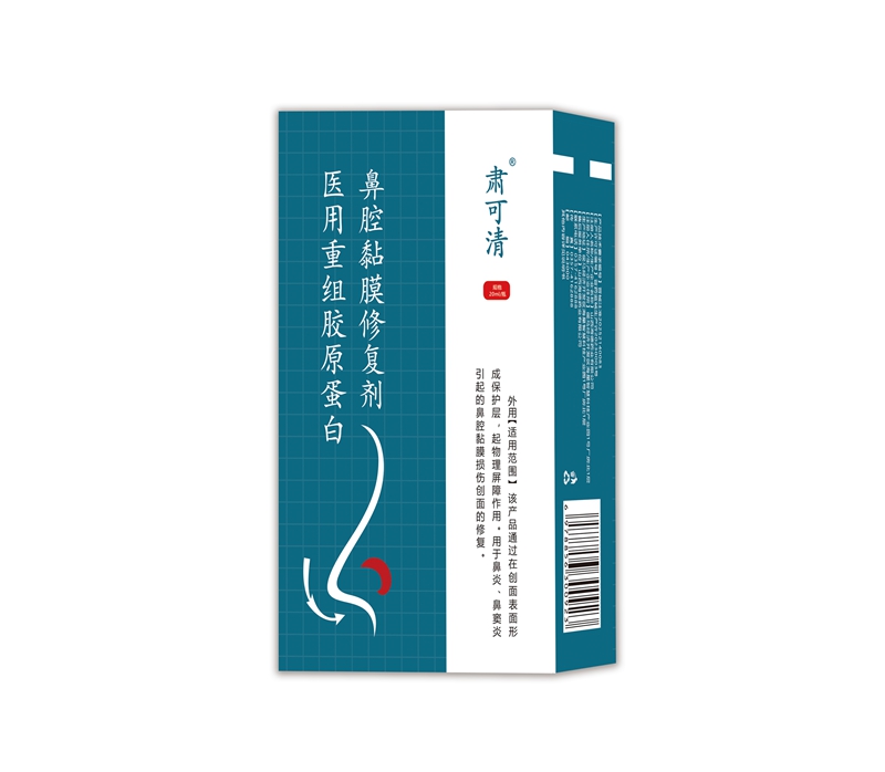 產品功效:該產品通過在創面表面形成保護層,起物理屏障作用。用于鼻炎、鼻竇炎引起的鼻腔黏膜損傷創面的修復。