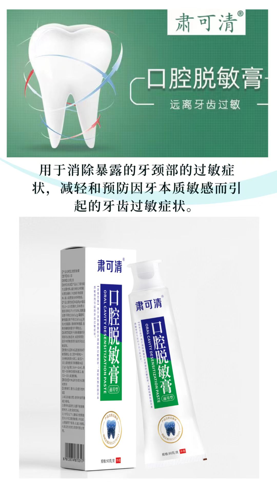 肅可清口腔脫敏膏(牙膏)